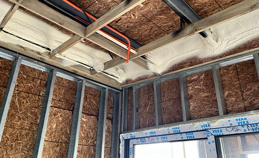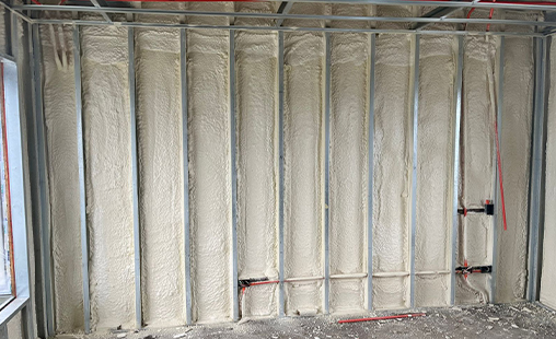 La espuma se puede aplicar rapidamente mediante pulverizacion, expandiendose y endureciendose en corto tiempo para formar una barrera aislante continua, lo que ouede reducir los tiempos de construccion y costos laborales.